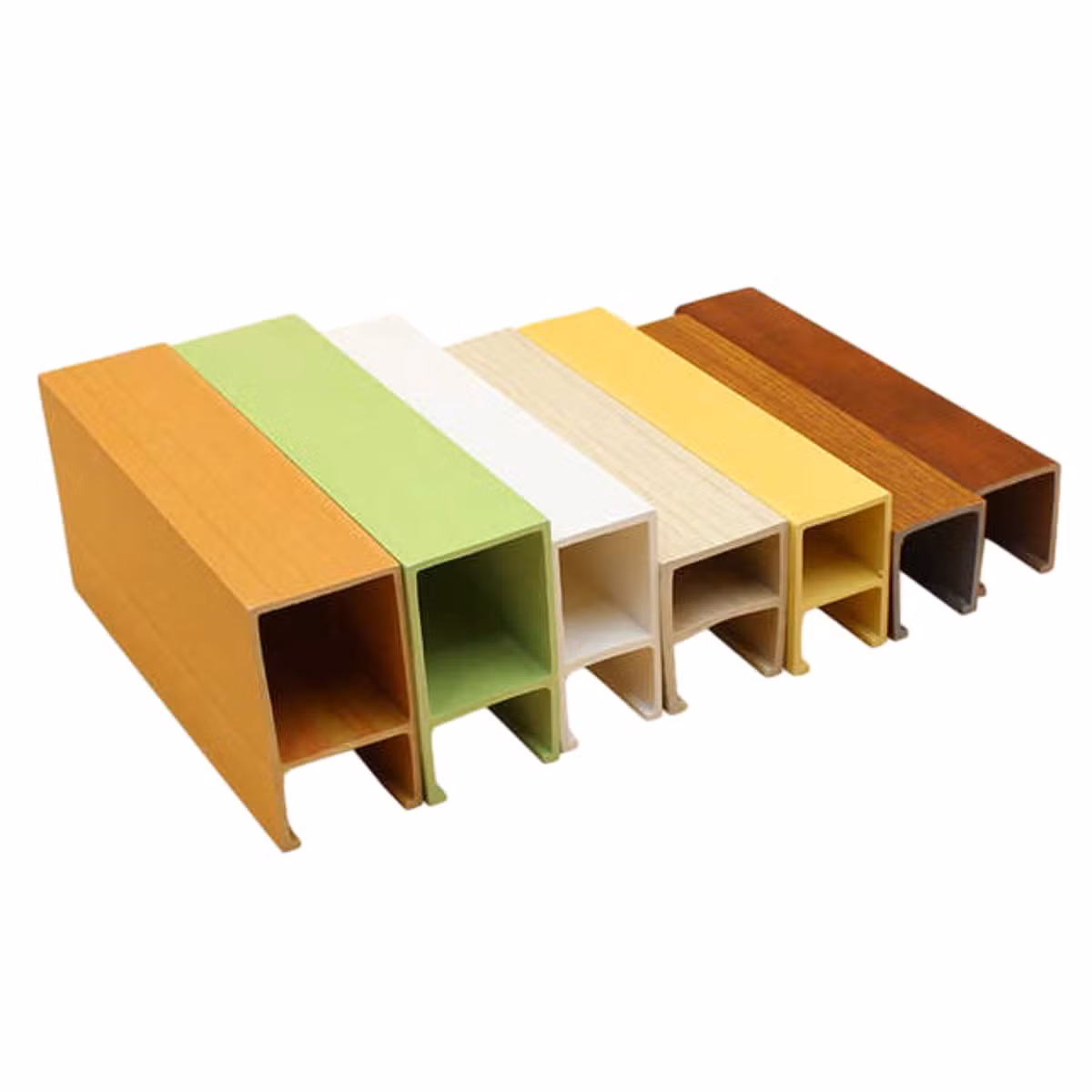 - Wood plastic composite construction — blends recycled wood fibres with polymer resins to create a ceiling panel that looks like real timber but outperforms it in strength and lifespan