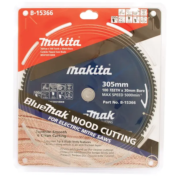 MAKITA 305mm 100T TCT Circular Saw Blade for Wood Cutting – Mitre Saws – BLUEMAK