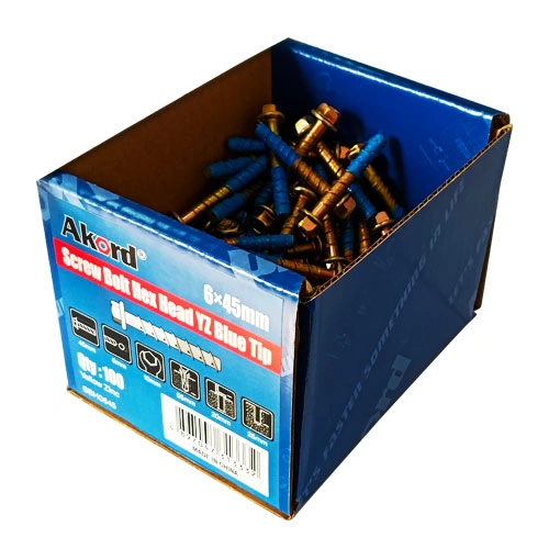 Screw Bolt Hex Head YZ Blue Tip 6 x 45mm BX100